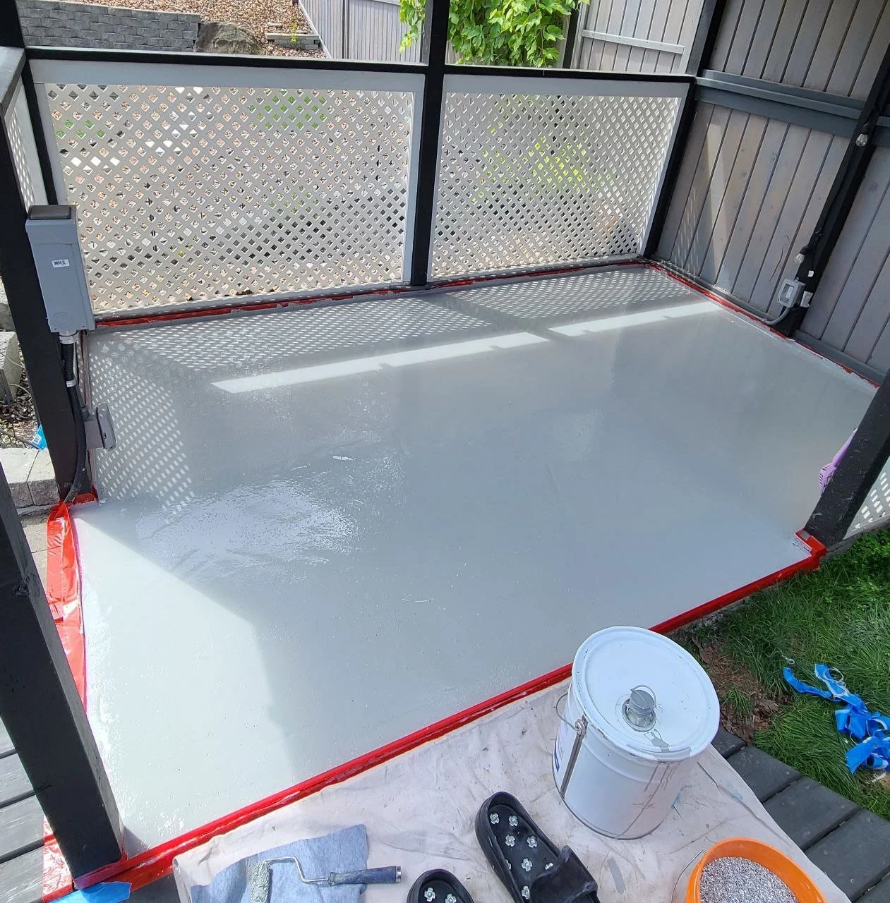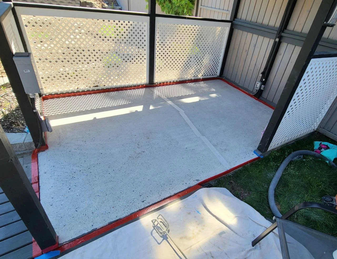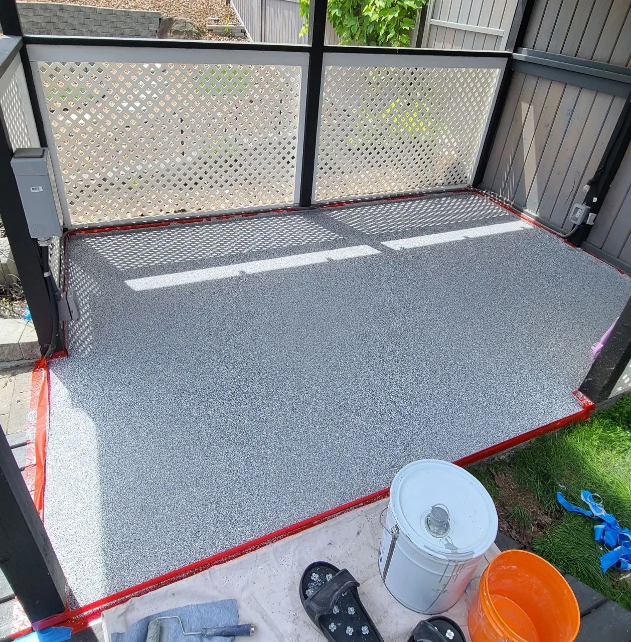 This client’s backyard mini-patio was in need of some attention. A Flexstone urethane floor was installed with a durable waterproof base coat, mini flakes and an extremely durable top coating which will provide them with years of enjoyment.